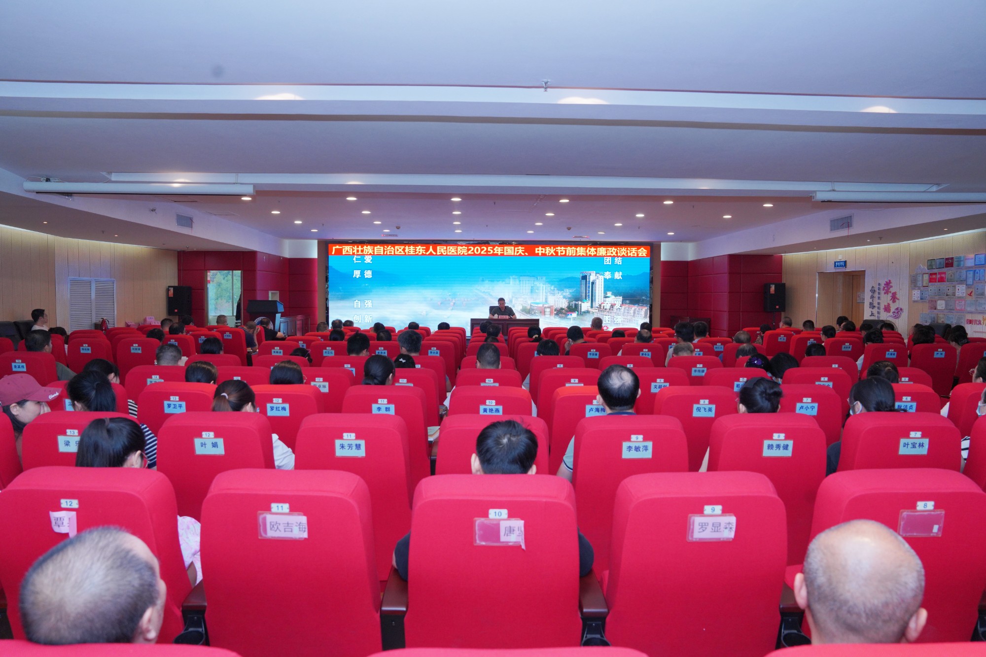 2025年国庆、中秋“双节”将至,为深入贯彻落实中央八项规定精神,持续巩固拓展作风建设成果,切实筑牢节日期间廉洁防线,9月28日,广西桂东人民医院召开节前集体廉政谈话会,医院党政领导班子成员、全体党员、中层干部、关键岗位干部参加会议。