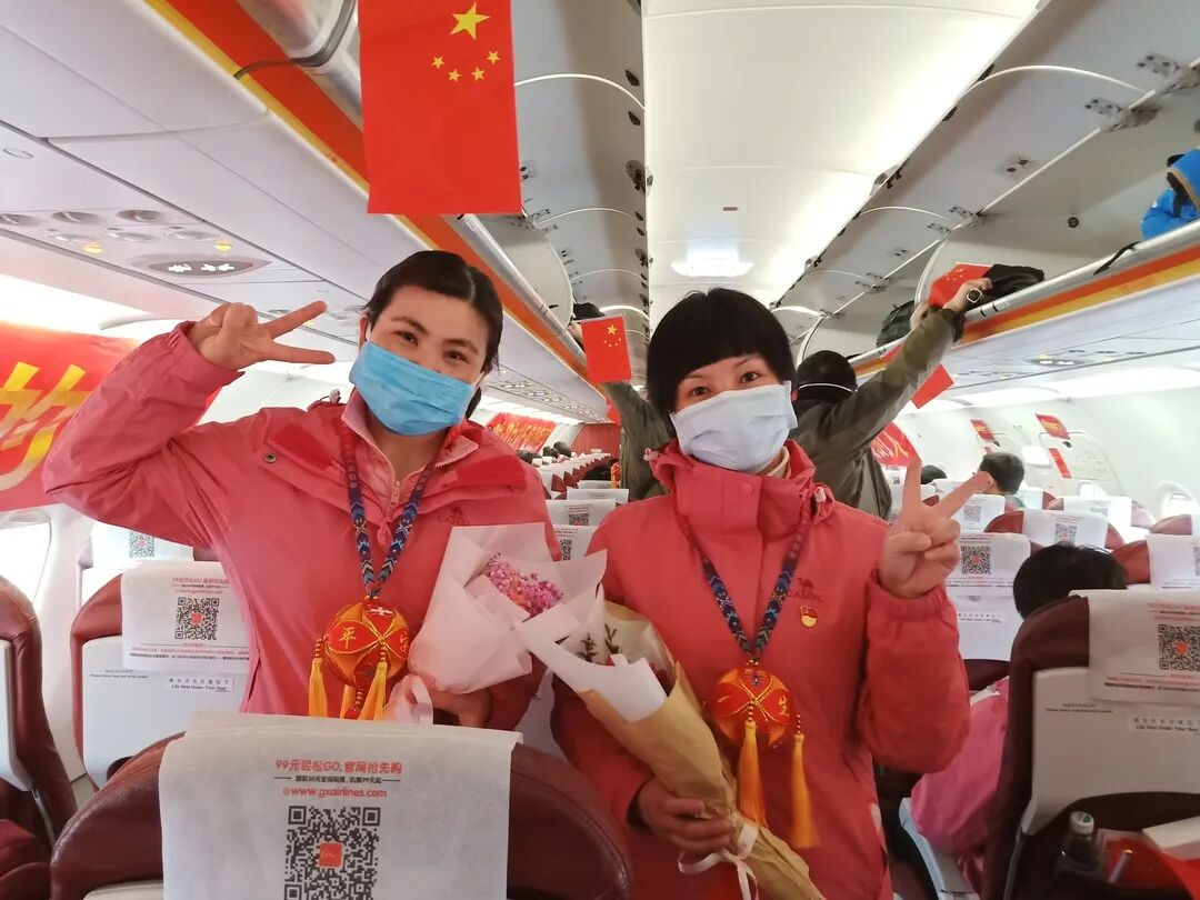 3月20日下午,广西桂东人民医院胡燕玲、覃小容所在的广西第二批支援湖北医疗队完成了救治任务,平安抵达南宁。3月31日中午,广西桂东人民医院第二批支援湖北医疗队8名医疗队员搭乘GX7976航班随队从武汉平安降落南宁机场。至此,广西桂东人民医院支援湖北医疗队的10名医疗队员全部平安回到广西的大怀抱,一个都不少!
