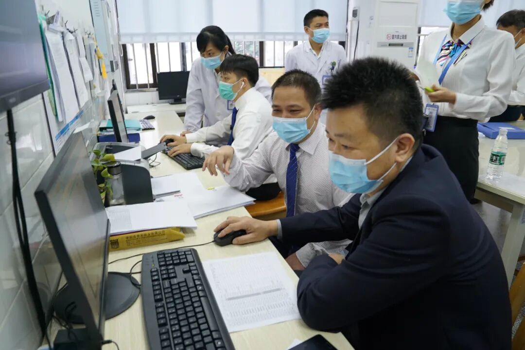 上海长海医院张永巍教授教授在现场检查,医院院长助理陈坤陪同上海中山医院厦门医院李秋平教授在现场检查,医院副院长周正银陪同