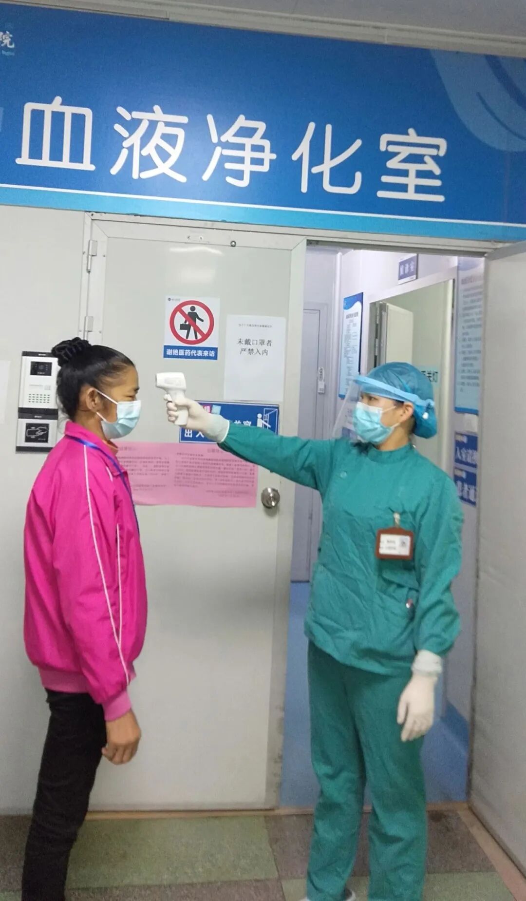 血液净化室入口进行体温测量