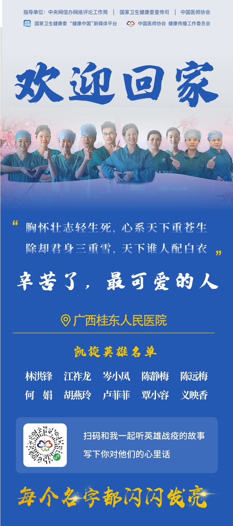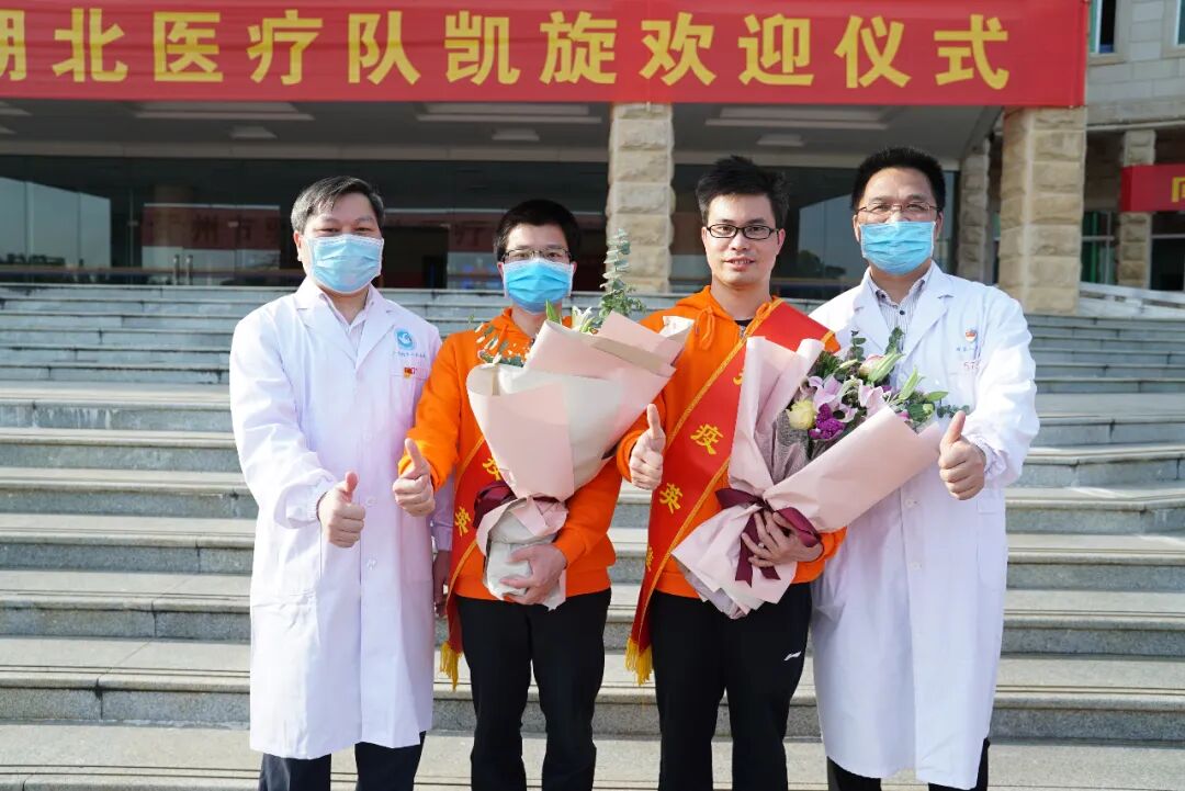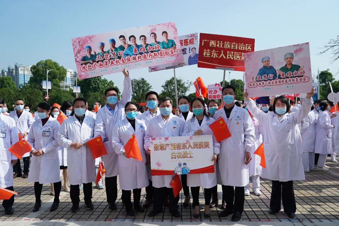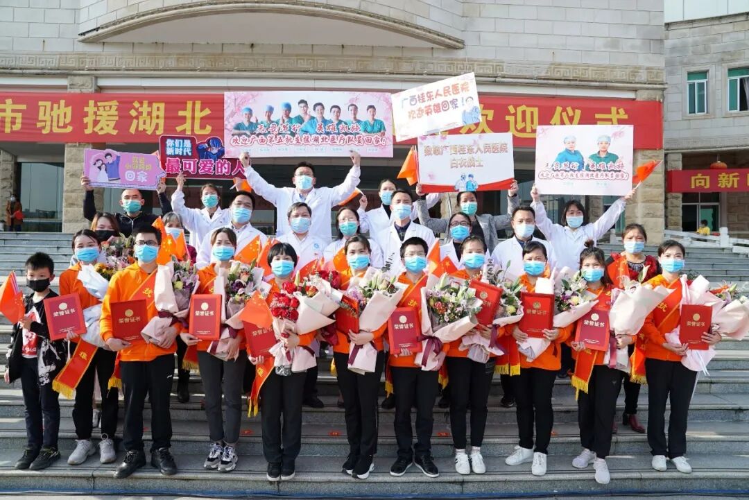 在武汉,他们从冬天走到春天,圆满完成了组织交给的光荣任务,用实际行动兑现了出征誓言,没有辜负市委、市政府的重托,没有辜负贺州人民的期望,10名队员全部平安凯旋归来,无一感染,实现广西桂东人民医院援鄂英雄平安凯旋大团圆。邮箱 | gxgdyy[at]163[dot]com