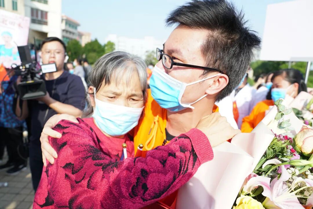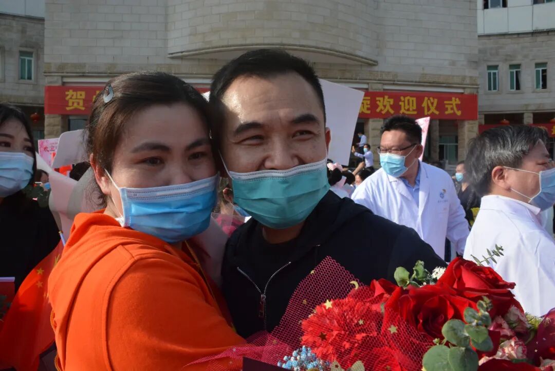 迎接仪式结束后,医疗队员们纷奔向亲人、同事,大家含泪相拥,激动心情难以言表。他们每个人的脸上都洋溢着灿烂的笑容,这一刻,他们全员正式回家归队!