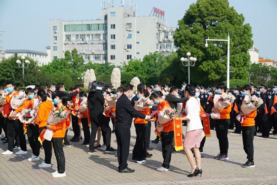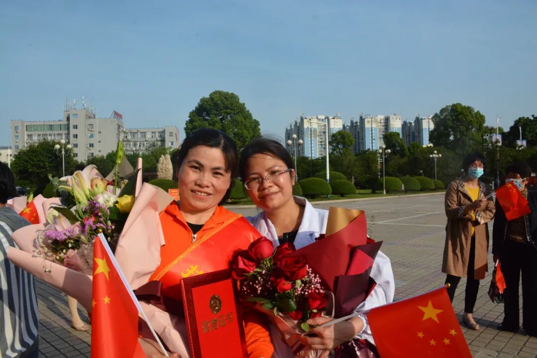 在迎接仪式上,贺州市市委书记李宏庆、市委副书记、市长林冠代表市委市政府以及全市246万老百姓向大家的平安归来表示最热烈的祝贺,对大家的辛勤付出致以最崇高的敬意,并向默默支持援鄂医护人员的家属表达最真挚的感谢。贺州市领导为全体援鄂医疗队员佩戴绶带“抗疫英雄”,同时颁发“寿城最美医护”荣誉证书。