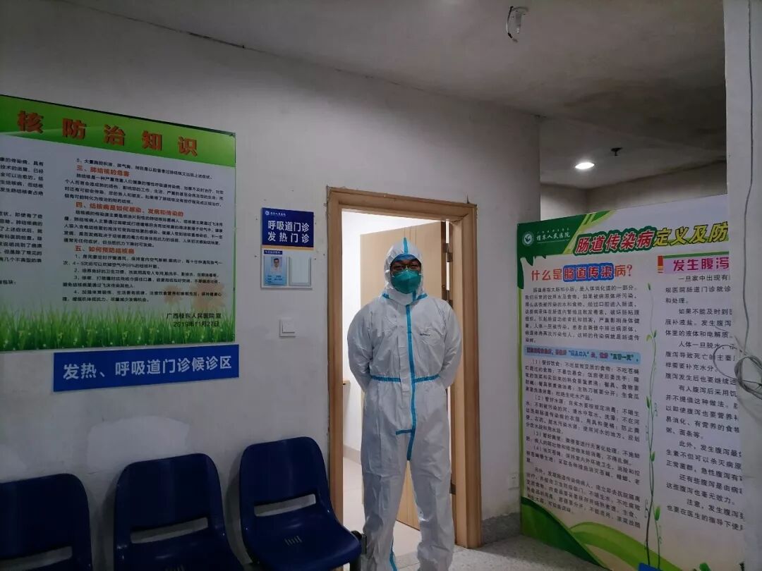 广西桂东人民医院抗疫一线的白衣战士在龙船冲水上检测站点工作