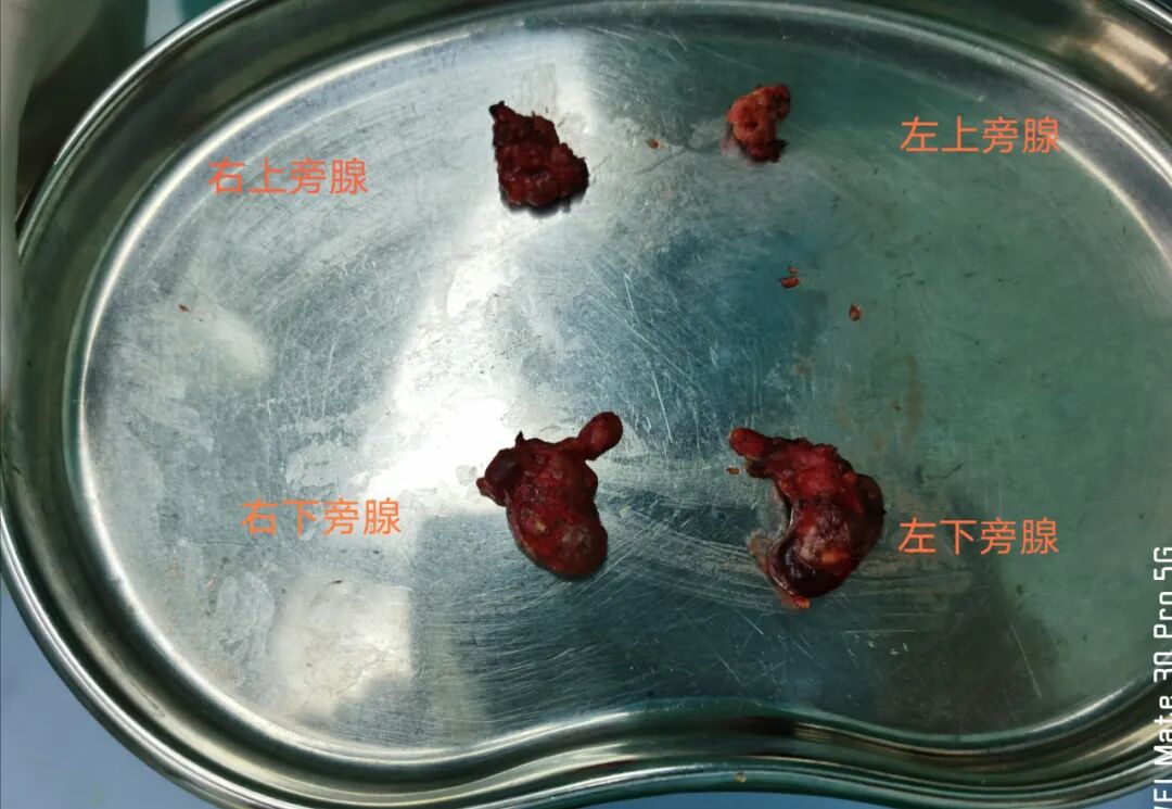 经检查黎先生的甲状旁腺激素1511pg/ml(正常值15—65pg/ml),经过评估后,乳腺甲状腺外科副主任李狄航团队决定为其实施在腔镜下双侧甲状旁腺全切除术+甲状旁腺异位移植术。