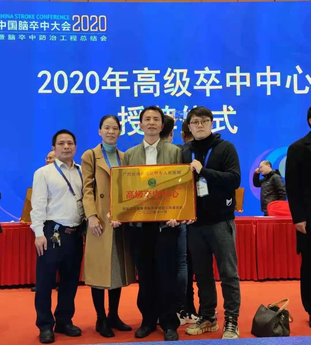 会上向全国45家获得2020年第二批高级卒中中心建设单位的医疗单位授牌,广西桂东人民医院名列其中,成为贺州市首家成功获得国家“高级卒中中心建设单位”称号的医院。这标志着医院在卒中的救治能力上迈向国家级水平。