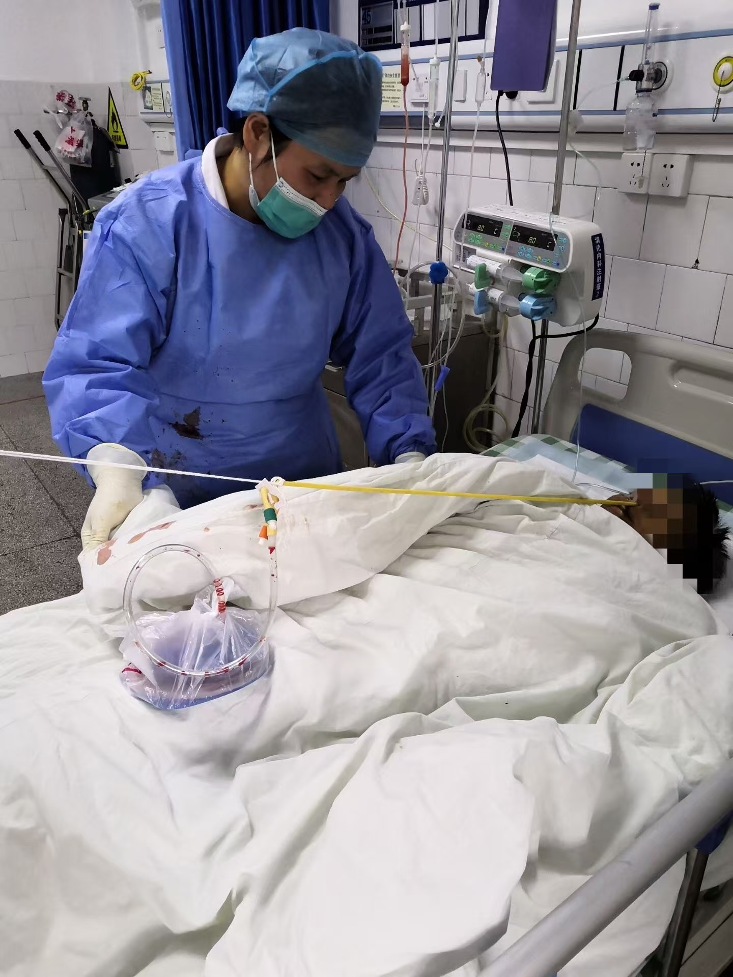 “护长,一位食管胃底静脉曲张的患者做了内镜治疗后还在持续出血,值班医师评估说现在做介入或外科手术的风险都大,要您马上到重症监护室插三腔二囊管压迫止血......”