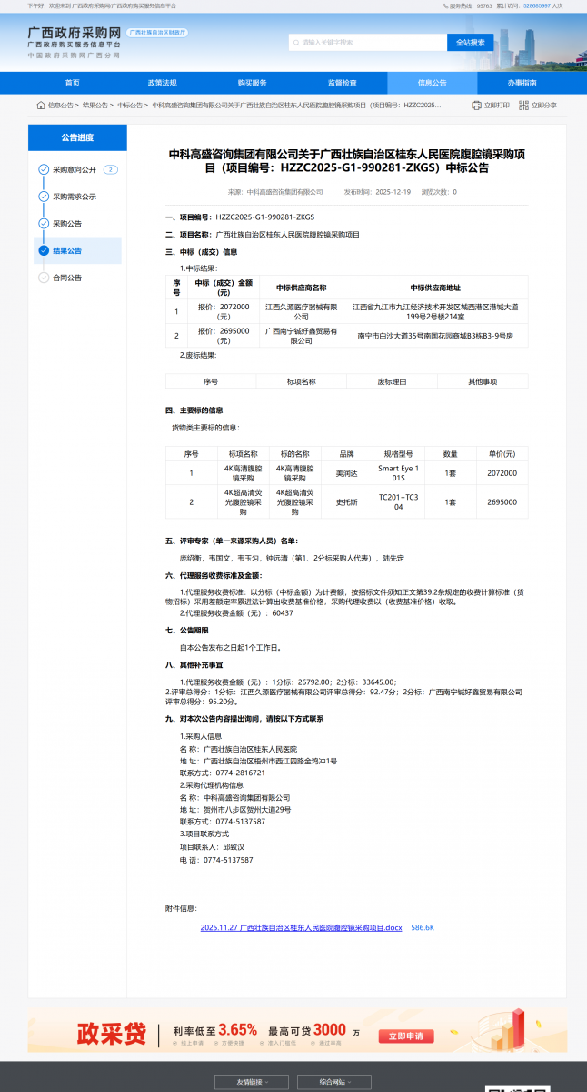 广西壮族自治区桂东人民医院腹腔镜采购项目中标公告