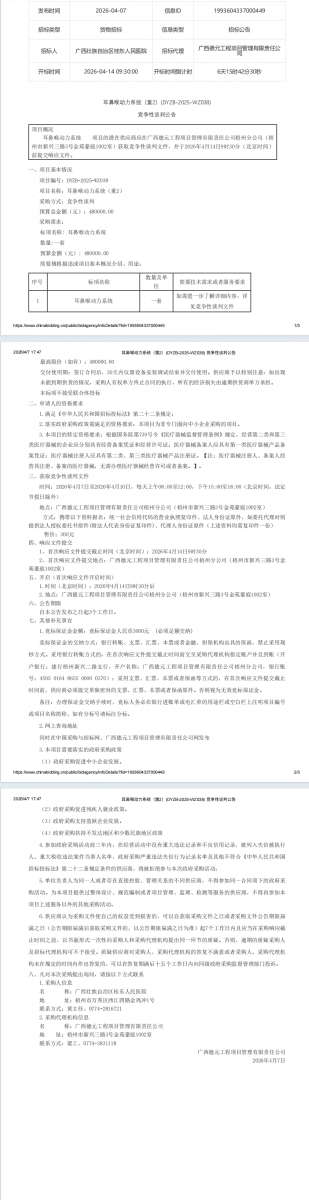 广西壮族自治区桂东人民医院耳鼻喉动力系统(重2)竞争性谈判公告