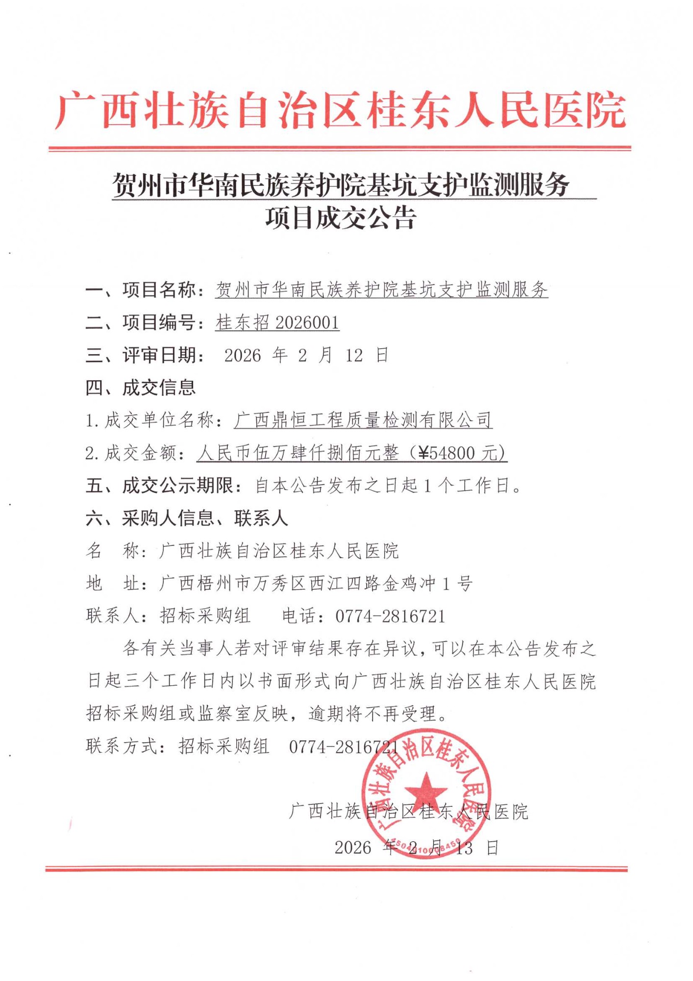 贺州市华南民族养护院基坑支护监测服务采购成交公告